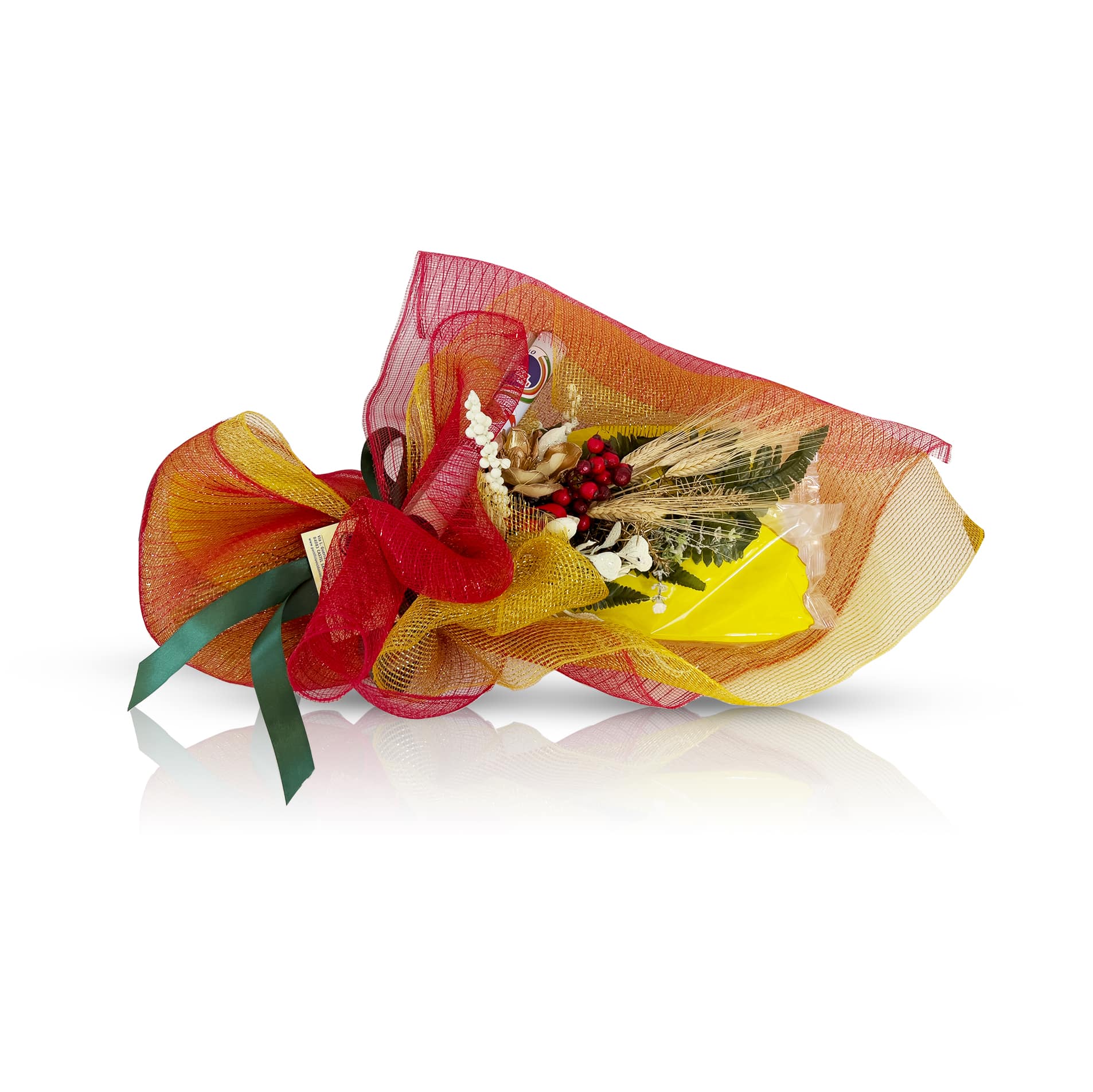 Il nostro ‘Bouquet di pasta’ è una composizione raffinata che dispone vari formati di pasta come un elegante bouquet floreale. Questo regalo unico unisce l’arte culinaria all’estetica, rendendolo ideale per chi vuole stupire con un simbolo di eleganza e originalità durante le festività. Perfetto per le aziende che desiderano lasciare un’impressione memorabile su clienti e collaboratori, così come per i privati che cercano un dono che racchiuda bellezza e qualità. Una proposta che aggiunge un tocco distintivo alla tradizione, a partire da 18,00€.
